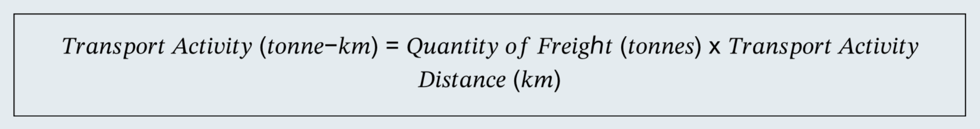 The denominator (transport activity) is calculated from freight mass and distance traveled.